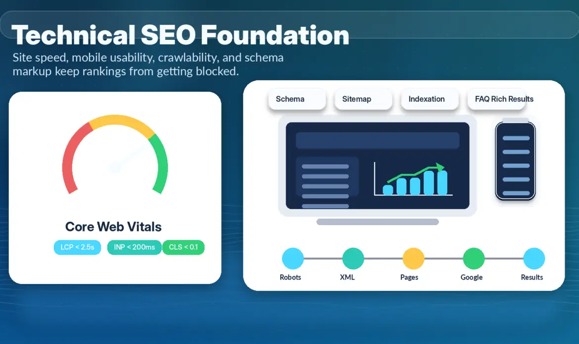 Before any content or link building strategy will generate meaningful results, the technical foundation of your website needs to be sound. Technical SEO problems are silent ranking killers — they do not produce obvious error messages, but they prevent Google from crawling, indexing, and ranking your pages correctly.