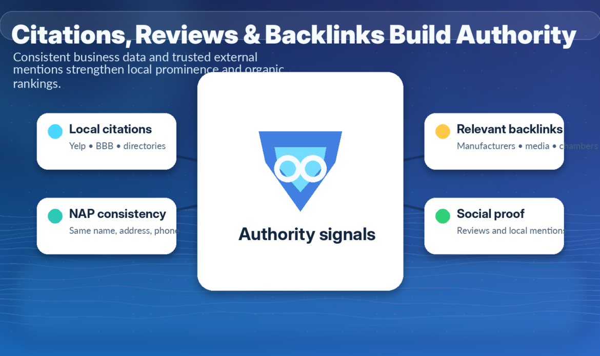 Off-page SEO refers to the signals that come from outside your website that indicate to Google your business is trusted, relevant, and authoritative. For pool companies, the two primary off-page factors are citations and backlinks.